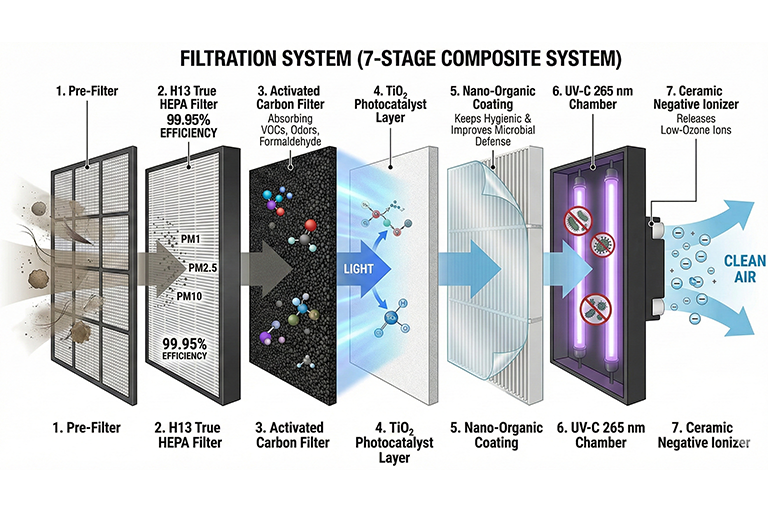 | 3. Activated Carbon Filter | Removes VOCs, odors, formaldehyde |