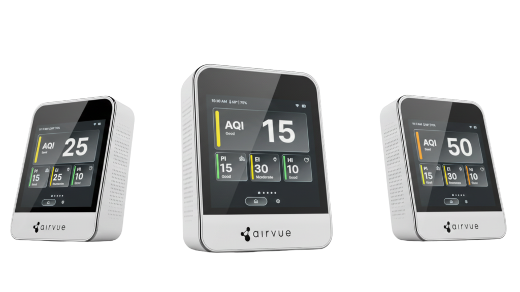 Inside Airvue Pro is a Swiss-calibrated sensing engine designed to handle Indian weather extremes — coastal humidity, winter inversion, dust, pollutants, and high VOC load