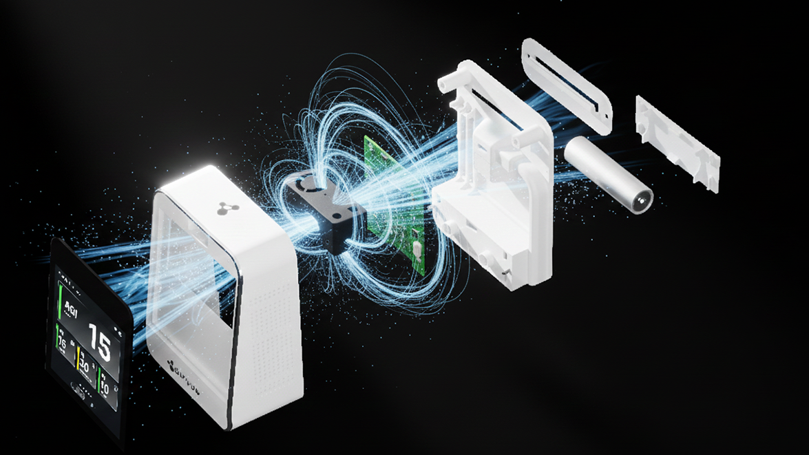 Robust enclosure, engineered for durability and accuracy. Powered by Swiss sensors for reliable, real-time indoor air quality data.