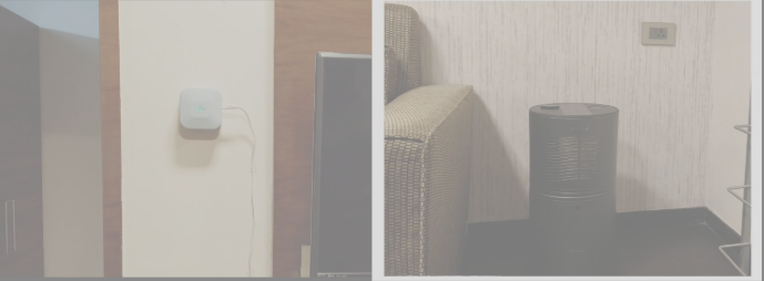 Figure: Deployed Air Quality Monitor (left) and Air Purifier (right) in the test location.