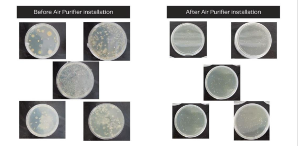 Figure: Air Purifier installation shows a clear reduction in microbial colonies.