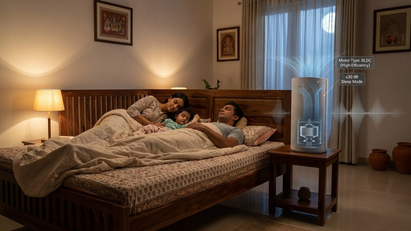 India-ready with smart Wi-Fi connectivity, enabling seamless control and OTA updates to keep your device future-proof. Operating at ~50 dB, and even quieter in Night Mode,