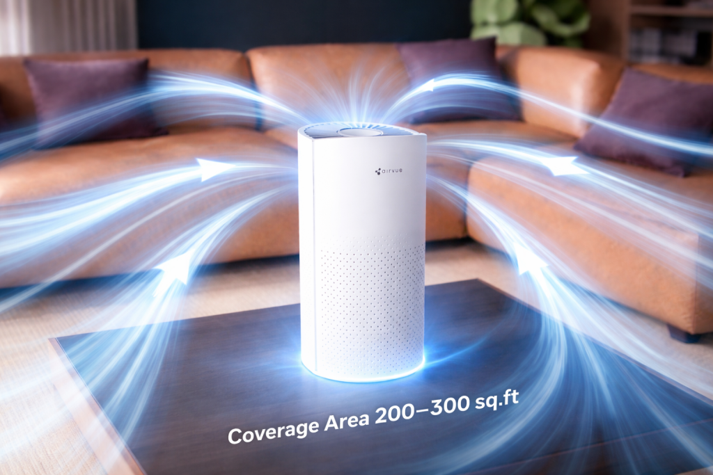 Designed to efficiently purify spaces ranging from 200 to 300 sq.ft, this air purifier delivers powerful and consistent air cleaning for medium-sized rooms